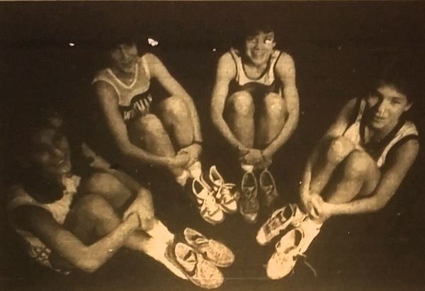 The 1984 journal All-County Cross-Country girls team (from left) : Erin Green, Rockville; Courtney Cathers, Whitman; Tammy DeVore, Churchill; Annie Hoefler. More photos at right. Not pictured: Jenny Schuchter, Gaithersburg.