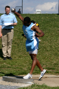 He started out his day by winning the shot put with a throw of over 49 feet, which by now is standard for him.