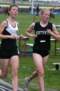 Andrew Palmer of Whitman won the distance races with ease. In the 1600, he broke away from the pack early and finished in 4:38. He relaxed in the 3200, running with Northwest's Nick Gummo for a 5:34 first 1600. He closed in 4:49 for the win in 10:23.