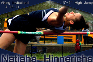 Natiaha Hinnerichs of Holton Arms delt with slick surfaces and a soaking wet mat to match her personal best mark in the high jump of 5-04. The mark tied the meet record set by Audrey Gariepy-Bogui in 2007.