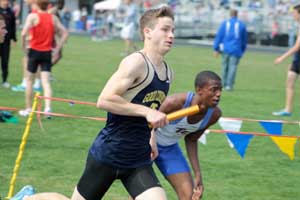 Good Counsel, who placed second in the DMR in 10:38.4, won the 4x800 earlier in the meet with a county-leading time of 8:04.9. Sophomore Collin Crilly anchored the squad with a 2:00 split.